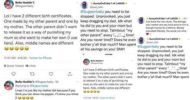 The quite controversial situation started when the elder sister, known on Twitter as @Sugaarrbaby, sent out a tweet about having two birth certificates because her father seized her original birth certificate as a way of punishing her mum and so her mother got another one.