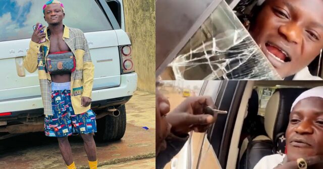 Portable shared a video on his page showing the moment the said fan came begging after seeing the broken car window and explaining that it wasn’t his fault the glass got broken.