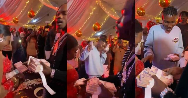 A video which was shared online shows the moment Nigerian singers, Naira Marley and his protege, Zinoleesky were effortlessly spraying bundles of 500 Naira notes at an event.