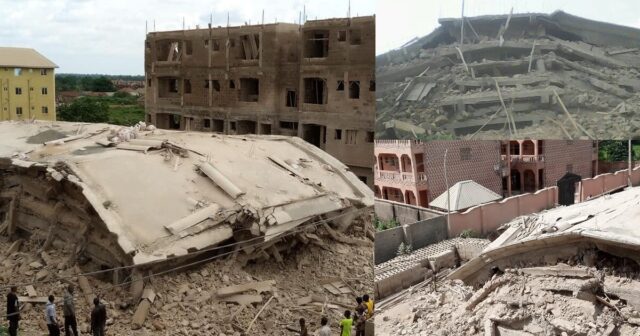 The man speaking in a video shared on social media explained that a part of the building collapsed some days ago yet bricklayers are still working on the faulty structure.