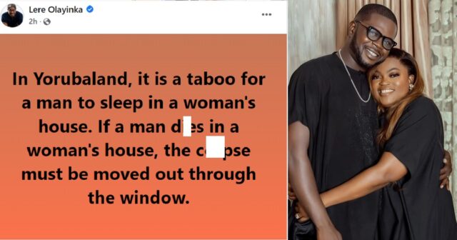 Reacting to this, Mr. Olayinka stated that is a taboo in Yorubaland for a man to sleep in a woman’s house. He also said if a man dies in a woman’s house, the corpse must be moved out through the window.