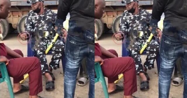 A Nigerian man, identified as Taofeek Gbolagade, has been declared wanted by security officials after he was captured assaulting his pregnant wife in Ibadan.