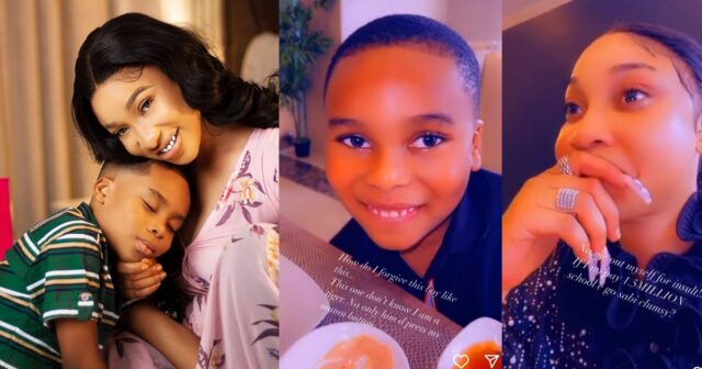 Nollywood actress, Tonto Dikeh gave a rather hilarious response to her son, King telling her she’s clumsy and funny sometimes.