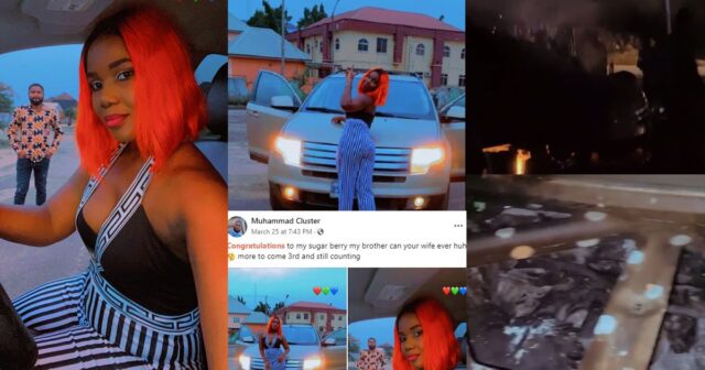A Nigerian man has taken to social media to thank God for life after his wife’s new car went up in flames while they were inside.