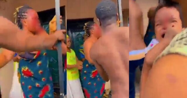 A rather disturbing video that’s started serving rounds on social media shows how neighbours had to intervene as a woman and her infant child were being battered by her abusive husband.