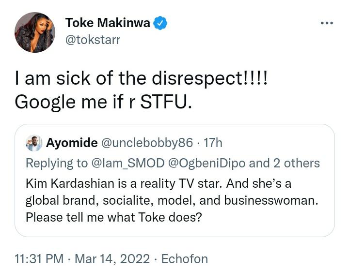Twitter user @rsvptemple who claims to be the social media manager’s brother, took to Twitter to lambaste the reality show star for failing to meet her end of the bargain.