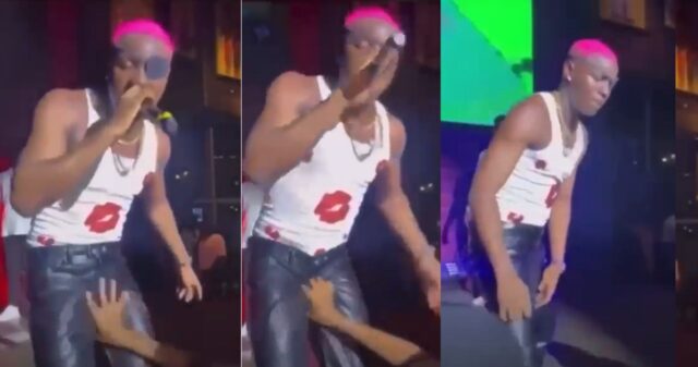 A shocking moment where Nigerian Singer, Ruger suffered sexual abuse from a female fan while he was performing on stage has gone viral on social media.