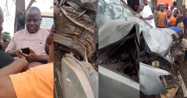 This is the driver. I’m happy for him,his wife, daughter and the other man (probably his friend). He was trying not to hit a motorcycle which swerved across his path, hereby leading to this disaster. The stupid motorcycle rider didn’t wait a bit. God is great