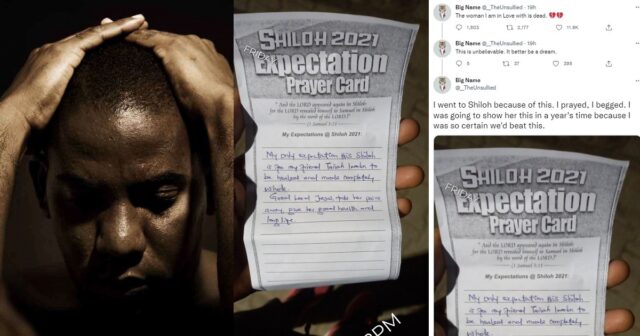 The said man with handle, @__TheUnsullied revealed that he went to Shiloh to pray and beg God to heal his woman but she eventually died. According to him, he met her during NYSC and she came to change the trajectory of his life.