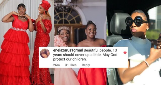While reacting, an Instagram user with the handle @enelazarus wrote, beautiful people. 13 year old should cover up a little. God protect our children.