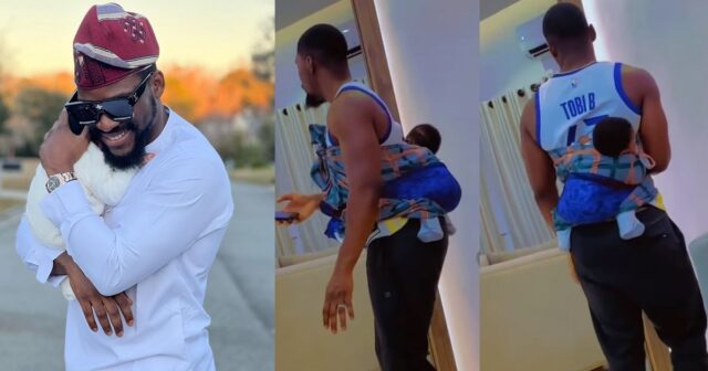 Reality TV star and actor, Tobi Bakre, has resumed father duties with his son, and one can tell he’s enjoying every bit of it.