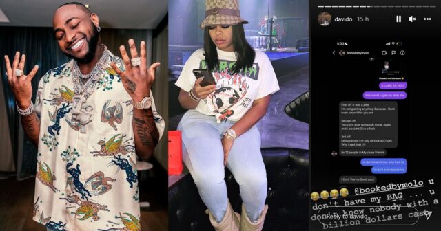 Davido initially called Molo out for shaming a male social media user who was in her inbox, and reacting to the call out, the show promoter, who stated that she was only joking, said she didn’t know who Davido was.