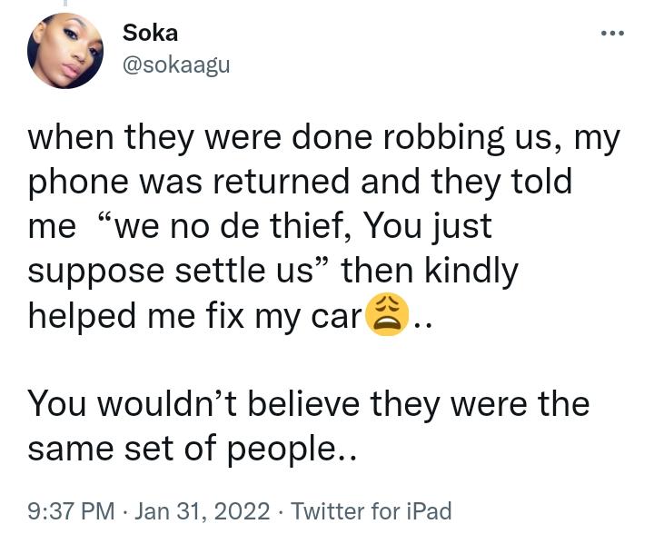 In a series of tweets she shared on the popular micro-blogging platform, the lady with handle @Deborahmoses_s disclosed that she was fast asleep on Thursday evening, February 17, when she felt a sharp slap on her face.
