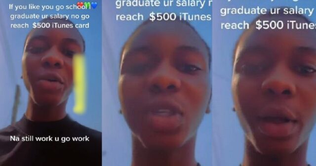 “No matter how many Universities you graduate from in Nigeria, no matter the degrees you acquire, your salary will still never be more than a $500 iTunes card (N285,000)… If you like acquire all the degrees, graduate from this one, go to another one, na still work you go work.”