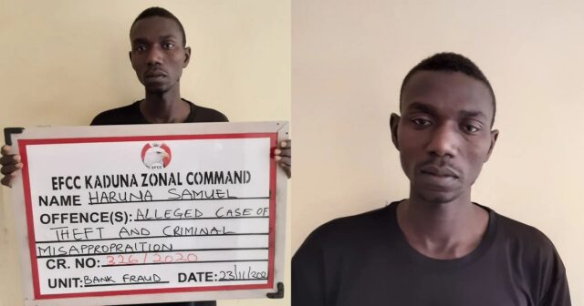 According to the EFCC, the young man identified as Haruna Samuel on December 3rd, 2020 received a credit alert of over twenty million Naira and knowing fully well he wasn’t expecting the money, rather than report the case to his bank, he chose to use the money for himself.