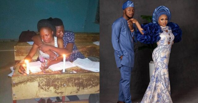 The Twitter user, with username, @Ade_darhmola, shared a throwback photo of himself and a lady where they literally burnt candles to read while they were still in the school.