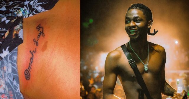 Nigerian singer, Stanley Omah Didia better known as Omah Lay has taken to his social media page to recognize a fan who tattooed his stage name on her skin.