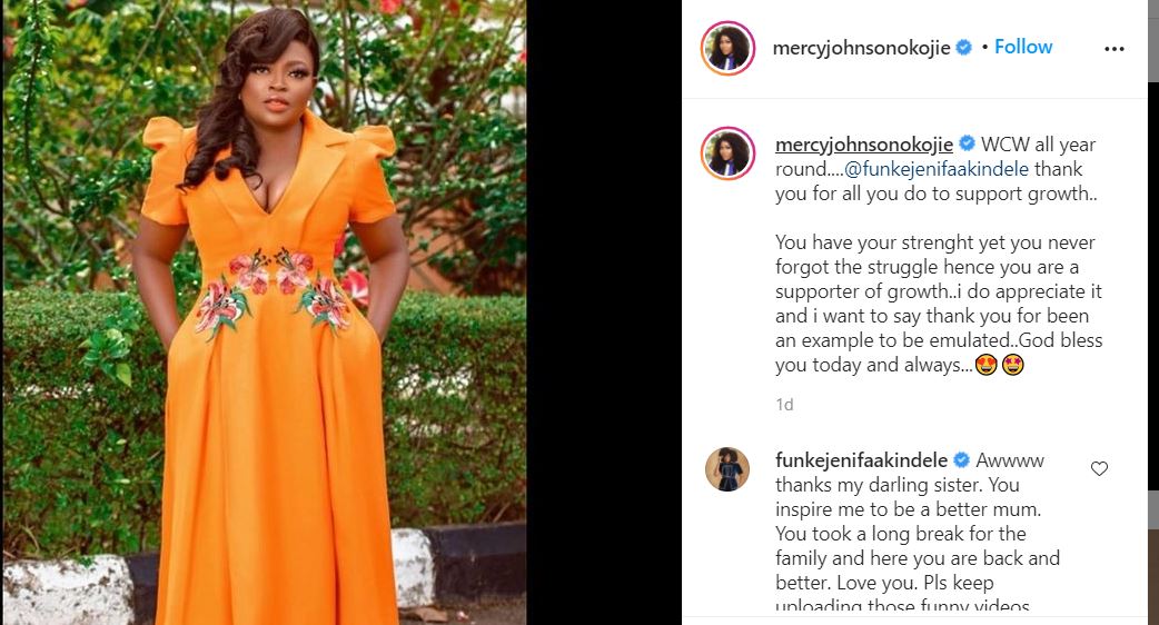 Sharing a photo of Tonto on her official Instagram page, Nkechi Blessing wrote, “Her only Crime was to want to be loved as hard as she loves🥲 I will always be in your corner Maami ❤️❤️❤️ #sigh”.
