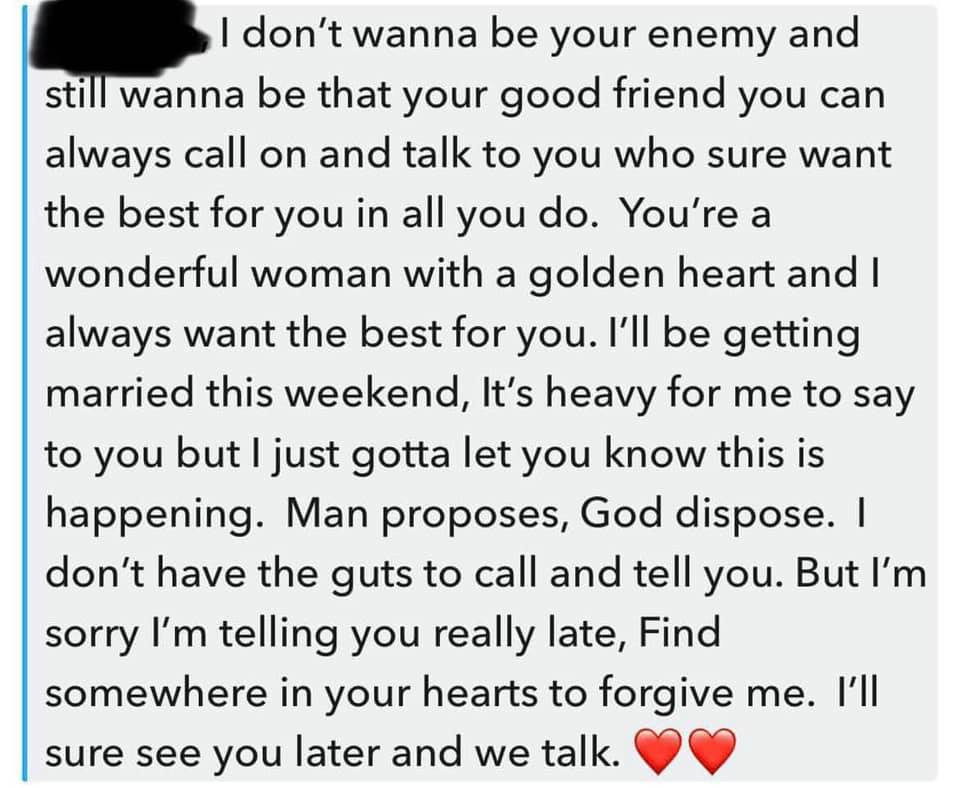 “When I eventually get married it will be for better or better! My fragile heart nobody should break it oh .”
