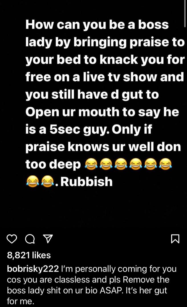 God no go ever dim my light for yours to shine sha This thing is all God so if you think it’s by bad mouthing… God go show you 100% I didn’t get here by myself. I got God behind me. Na why God go Dey always expose all of you.