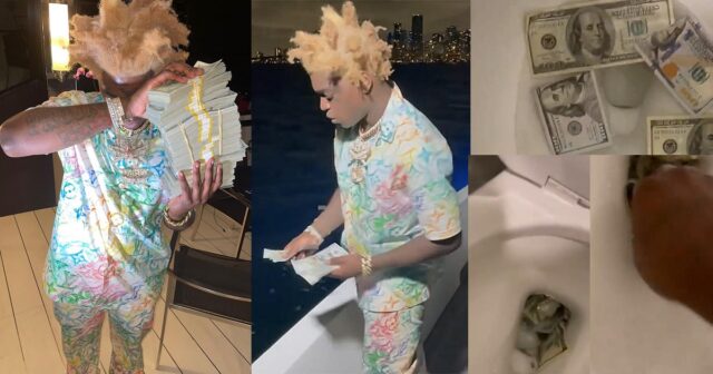 The controversial 24-year-old rapper in a video he shared on his official Instagram page was spotted throwing a stack of $100 bills off a boat.