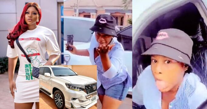 Nollywood actress, Destiny Etiko, has taken to social media to flaunt her newly-acquired Toyota Land Cruiser Prado jeep amid affair scandal with a popular oil mogul.