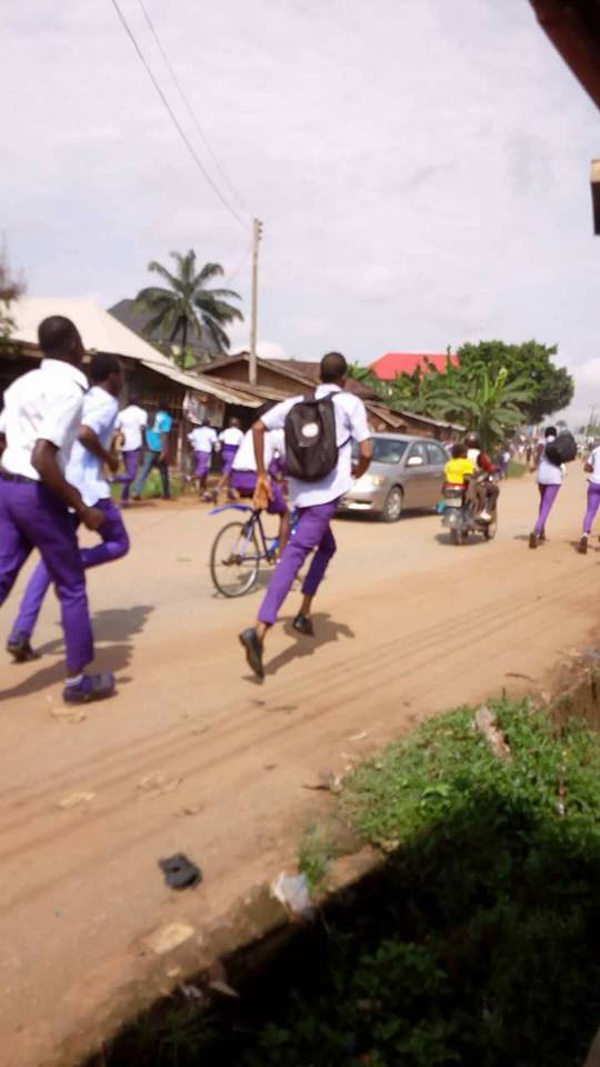 There is tension in Anambra state as students are running helter skelter over what is rumored to be the death of 3 pupils in Ozubulu/Nnewi during free army medical services.