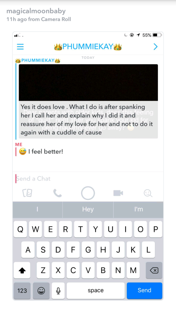 Then she got the perfect advise from a mother, which reads; “Yes It does love. What I do is after spanking her I call her and explain why I did and reassure her of my love for her and not to do it again with a cuddle of course”.