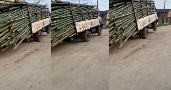 Recording on TikTok, a passerby @kenny__2098 captured the overloaded truck swaying back and forth on the road as the driver struggled to maintain control and prevent an accident.