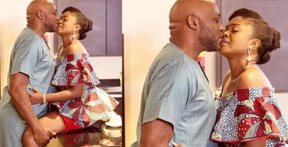 Talented Nollywood pair, Omoni Oboli and veteran, Richard Mofe Damijo (RMD) were spotted sharing a passionate kiss in a new movie “Love is war” and this has caused a stir amongst their fans.