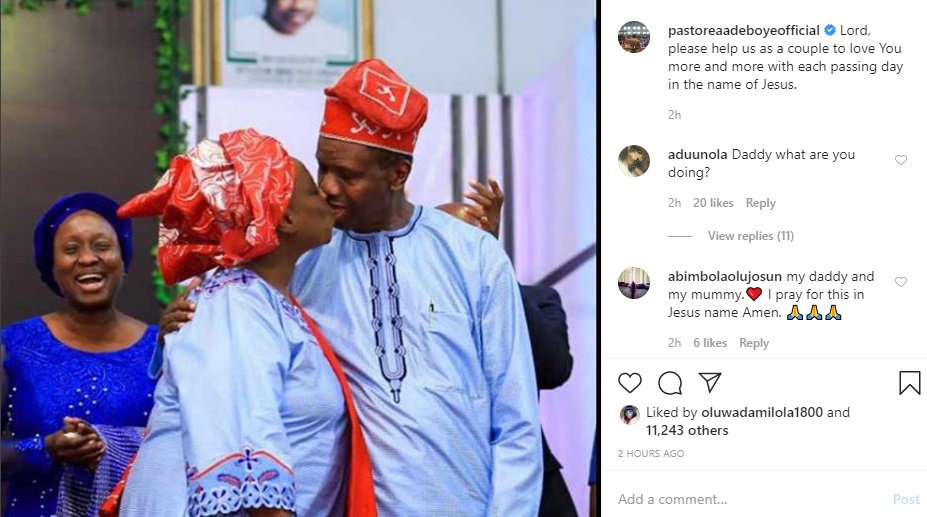 The clergyman shared this throwback photo of him and his wife, Foluke, kissing passionately, as he prayed for couples on this auspicious Valentines day.