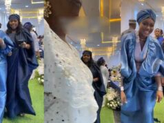 The lady was captured spotting a braided hairstyle with a yellow hair attachment, which made the her a center of attraction among the crowd.
