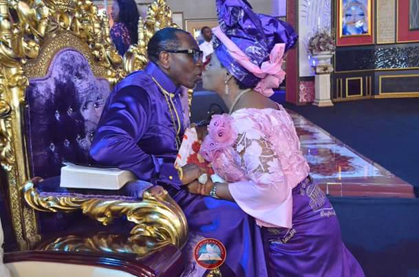 Former Christian Association of Nigeria President, and the founding and Senior leader of Word of Life Bible Church, located in Warri, Nigeria, was photoed kissing his wife, Pastor Helen Oritsejafor, passionately during a church service today, 12th of March.