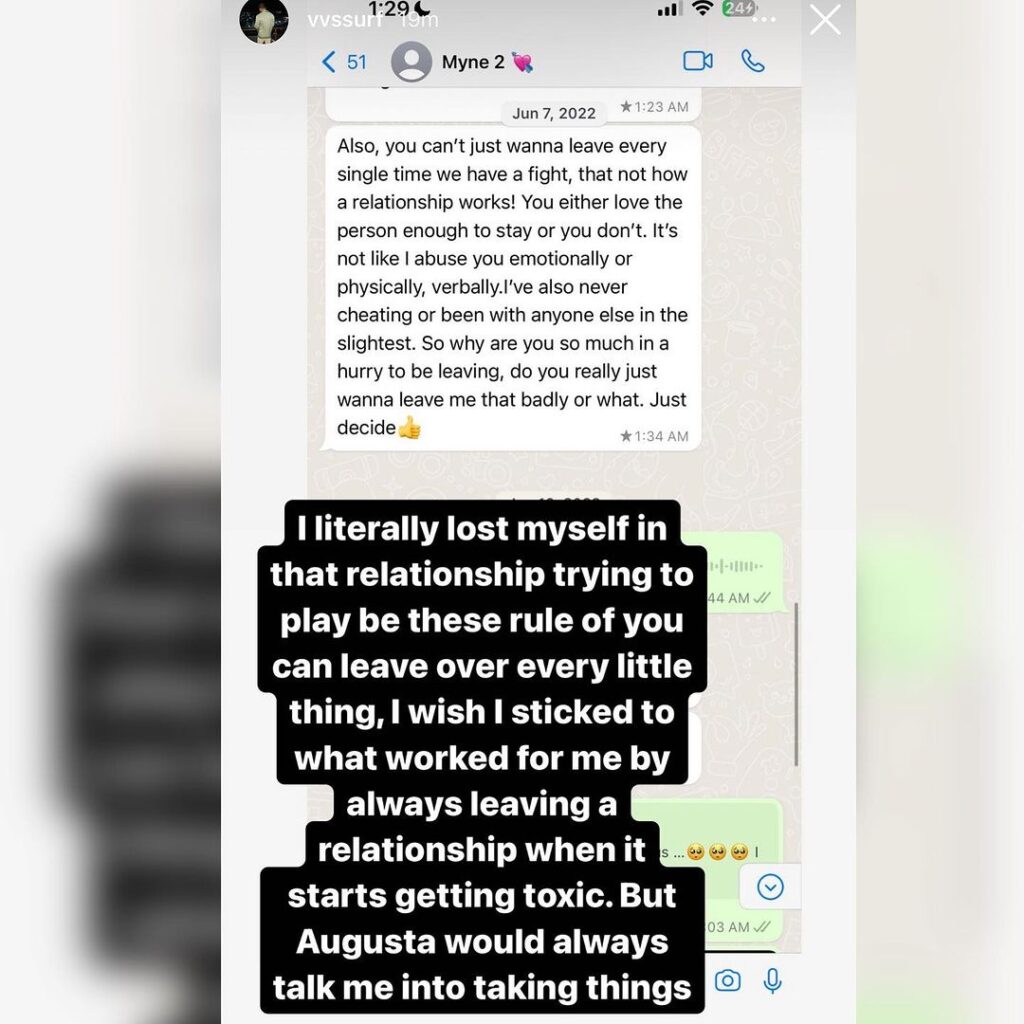 He also disclosed that whenever they had a fight, Augusta’s mother would claim that his ex-girlfriend was using “juju” to make them fight, in order to separate them.