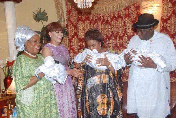 Ex-President, Goodluck Jonathan and his wife, Patience Jonathan visited Femi Fani-Kayode’s triplets Ragnar, Aiden and Liam in their Abuja home.