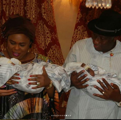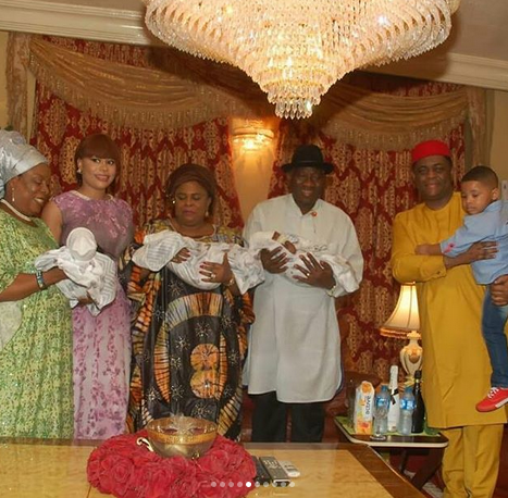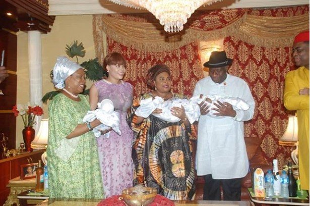 Ex-President, Goodluck Jonathan and his wife, Patience Jonathan visited Femi Fani-Kayode’s triplets Ragnar, Aiden and Liam in their Abuja home.
