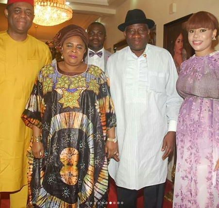 “It was an honor and privilage for Precious and I to receive President Goodluck Jonathan and First Lady Peace Jonathan in our Abuja home yesterday.