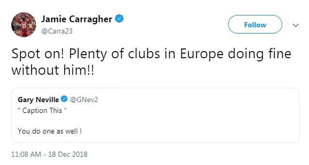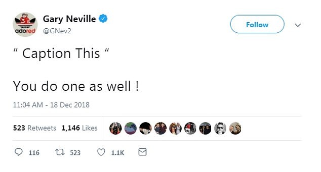 Neville wrote on Twitter: ‘Caption this’ ‘You do one as well!’