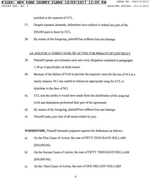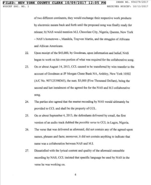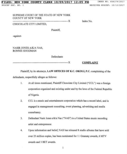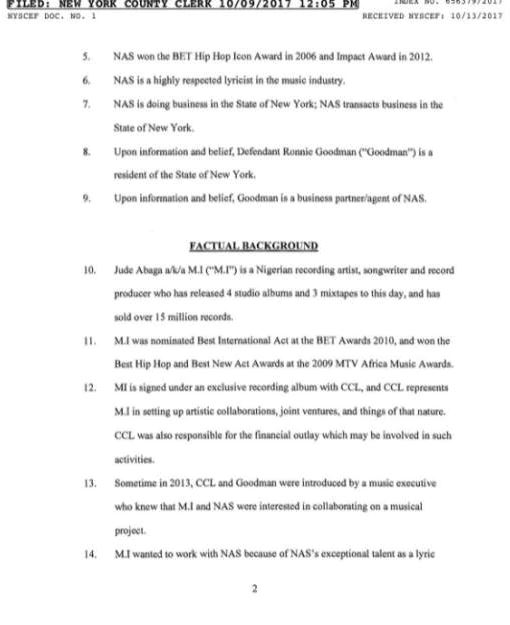 Nigerian rapper, M.I Abaga and Chocolate City filed a lawsuit in New York State Supreme Court against American hip-hop artist, Nas claiming that he didn’t deliver the verse they wanted.
