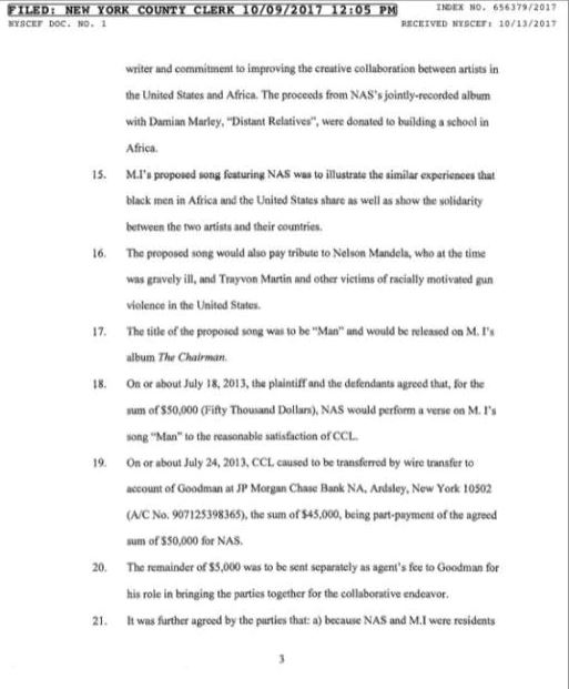 The details of the deal were that Nas was supposed to mention “M.I, Chocolate City, Nigeria, Queens, New York—NAS’s hometown—, Mandela, Trayvon Martin, and the struggles of Africans and African Americans” in his verse.