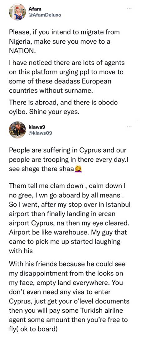 The man, identified as @Klaws09 on Twitter, shared this while reacting to a tweet of a lady who warned Nigerians to beware of travelling to “low-budget” European countries out of desperation to leave the country.