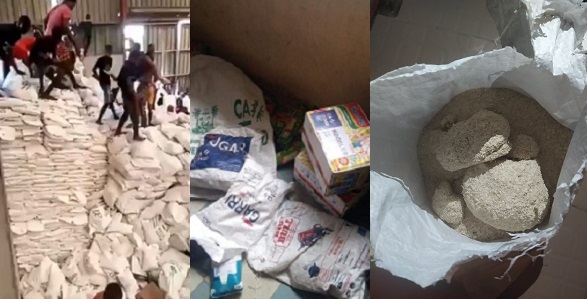 However, one of the people who had her hands on the looted item, showed the stated of one of the package. Asking why the items weren’t delivered in good time, she shared the image of “Garri” that seems to have started getting expired.