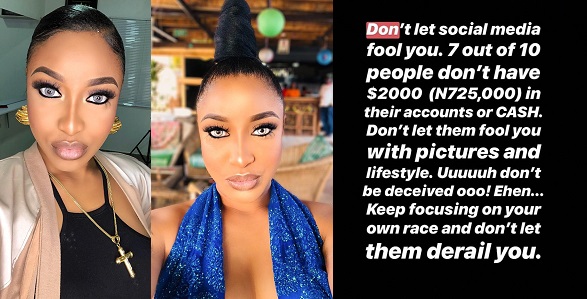 The actress’s subject today focused on how people shouldn’t be envious of the life that some people live on social media as she says most of these people they’re envious of can’t even boast of a particular amount in their accounts.