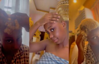 Nigerian man goes the extra mile as he shaves lady’s coloured hair (VIDEO)