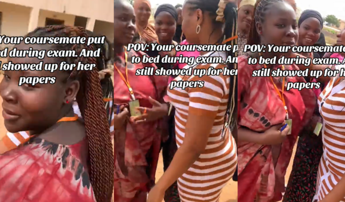 Students celebrate as their course mate showed up for her exams after delivering a baby boy (VIDEO)