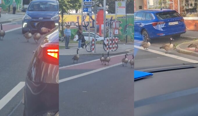 Nigerian Woman Amazed As Drivers Wait For Geese Crossing Road In Germany (VIDEO)