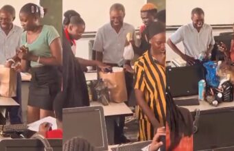 Heartwarming moment OAU students surprise their lecturer with multiple gifts in class (WATCH)