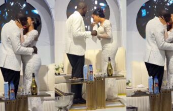 Adorable moment a bride cleaned her lipstick in preparation to kiss her husband...