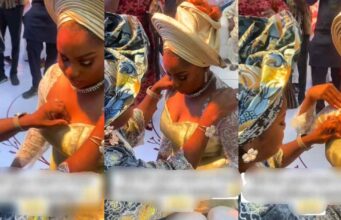 Nigerian mum tries to cover her daughter’s cleavage as she blesses her during...