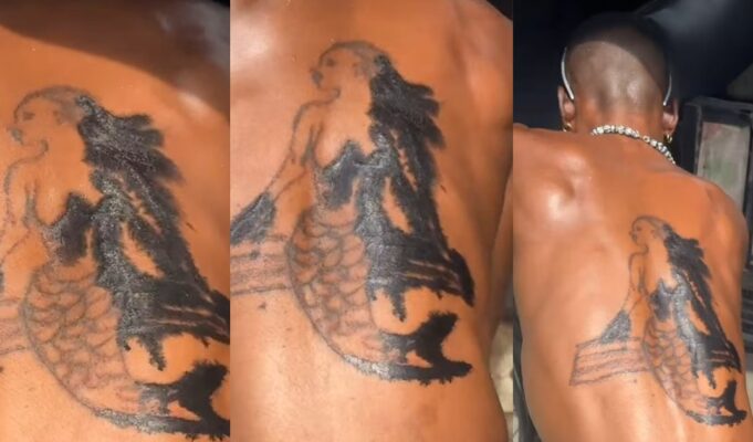 “Abi na engine oil dem use draw am” – Man shows off his ‘mermaid’ tatt00 (VIDEO)